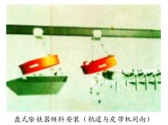 懸掛方式:懸掛安裝方式分傾斜、水平兩種,它們與除鐵器安裝在輸料皮帶上的工作位置有關(guān)。