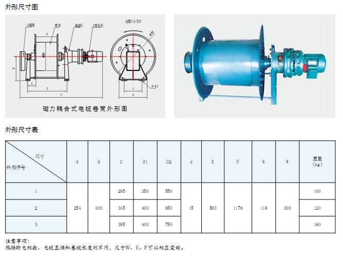 1、該系列電纜卷筒由Y系列電動(dòng)機(jī)、針線擺輪減速機(jī)(或蝸輪蝸桿減速機(jī))、永磁耦合器、集電滑環(huán)、卷筒組成。