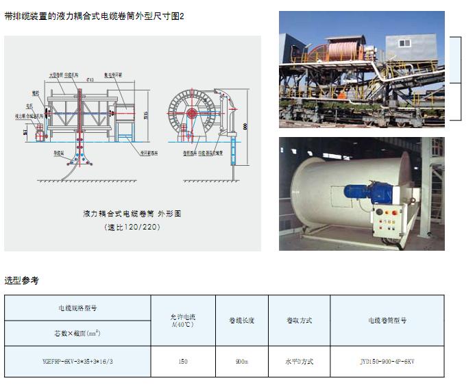 性能特點: JY系列液力耦合式電纜卷筒具有良好的卷繞特性: 1、 卷取力矩調(diào)節(jié)范圍大,調(diào)節(jié)穩(wěn)定后,對卷盤軸輸出 恒定的扭矩; 2、 同步性能好。由于輸出扭矩單元(蝸輪蝸桿減速機 構(gòu)、液力耦合器)浸入油中,具備良好的打滑性能,能確保卷 取速度與移動設(shè)備速度保持同步。 3、 蝸輪蝸桿具有良好的自鎖性能,電機停電后,能確 保電纜不會因重力作用從卷盤上滑落。
