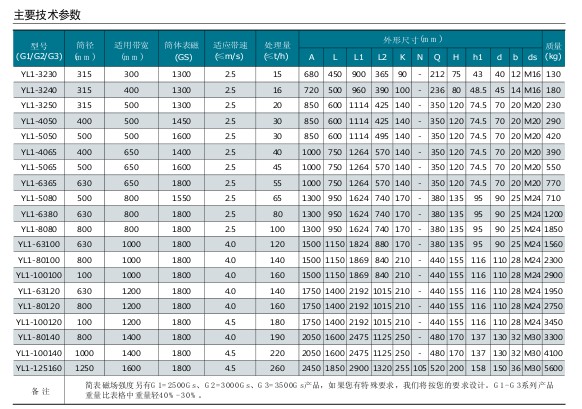 YL1系列永磁輪亦稱磁滑輪或干式大塊磁選機(jī)。其內(nèi)部采用高性能硬磁材料組成復(fù)合磁系,具有磁場(chǎng)強(qiáng)度高、深度大、結(jié)構(gòu)簡單、使用方便、不需維修、不消耗電力,常年使用不退磁等特點(diǎn)。廣泛用于水泥、磁選、礦山、鋼鐵、化工、耐火材料、垃圾等行業(yè)的選鐵。與DT-75型、AD-80型通用固定式皮帶輸送機(jī)配套使用代替主動(dòng)輪,也可與專用皮帶輸送機(jī)配套。