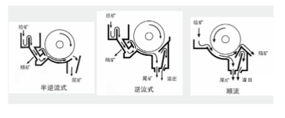 逆流型:收得率較低、品位較高。適宜于選別粒度不大于0. 6mm;
